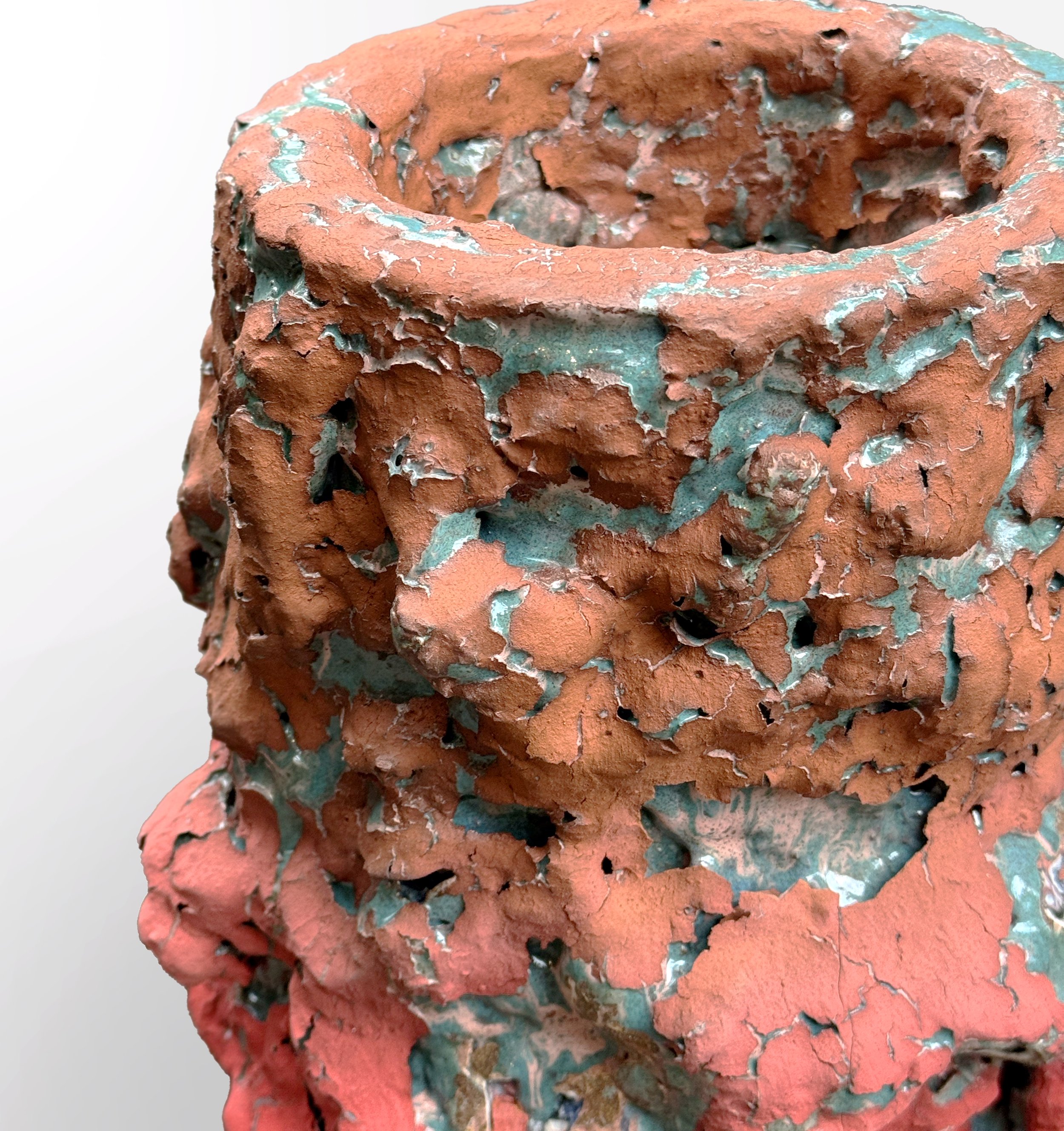 By shifting the focus away from clay’s traditional identity as a "soft" substrate, she repositions the ceramic process as an inquiry into the very life cycle of the earth’s crust. Her methodology is an exercise in accelerated geology; within the kiln, Razumovskaya mimics the deep-time processes of the planetary furnace, creating a situation where minerals flux, melt, and migrate.